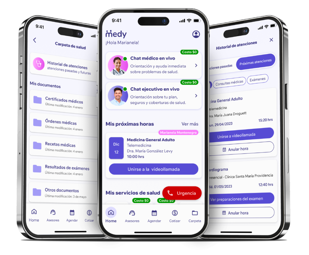 Guarda y organiza los resultados de exámenes, órdenes y recetas médicas de todas tus atenciones de salud y de tus familiares.Atención médica a un llamado de distancia