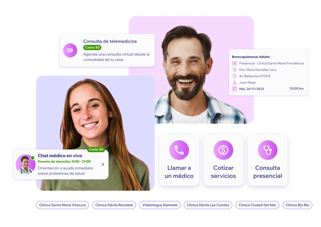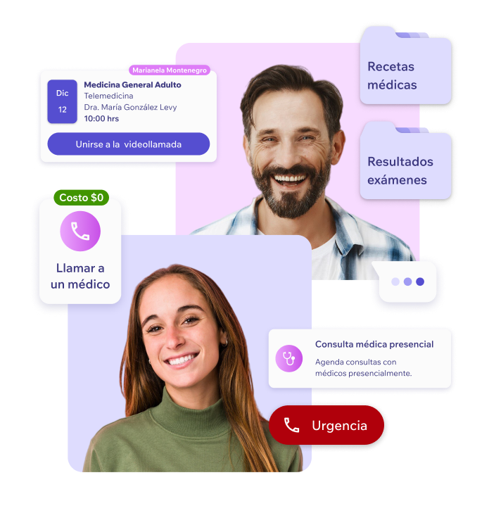Chat con un médico, videollamada con especialistas, orientación médica vía teléfono, servicios a domicilio y agendamiento en toda la red de nuestros prestadores de salud.